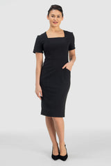 A beautifully structured square neckline and panelled front create a classic look. with back zip fasten and two side pockets. Can be worn with the Obi Belt or matched with the Pero Jacket for a professional style.
