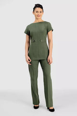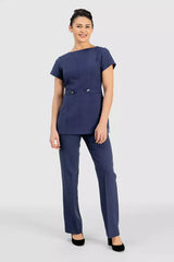 With hints of the 1960’s, our Capua tunic is an elegant addition to your uniform. With a flattering cut and a beautiful waist detail with statement buttons.