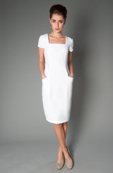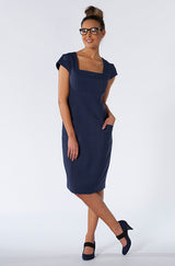 A beautifully structured square neckline and panelled front create a classic look. Features back zip fasten and two side pockets. Can be worn with the Obi belt or matched with the Pero Jacket for a professional style.