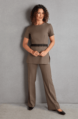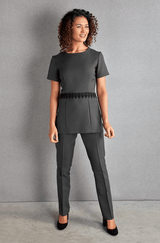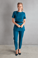 The Amalfi Tunic is the perfect addition to your beauty uniform collection. This short-sleeved beauty tunic features black lace detail around the waist, making it a flattering fit for all shapes and sizes. This beauty uniform looks great with our Slim Leg Trousers.