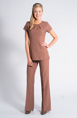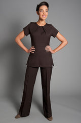 Our classic Ancona salon tunic. With a double pleated neckline feature and an easy back zip fasten, the Ancona tunic is both stylish and practical. There is also a matching dress also available. Can be worn with our Obi Belt for an alternative look or a contrast of colour.