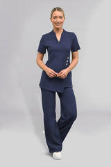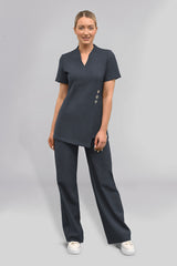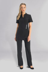 Our beautiful oriental inspired tunic. With its delicate mandarin shaped neckline and Feature antique silver buttons gives a graceful silhouette and style.