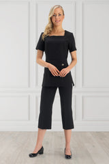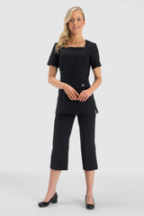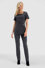 With a flattering square neckline and a strategically placed belt detail, our Enzo beauty tunic is designed to flatter every figure. The added silver button makes it the ultimate luxury salon tunic.